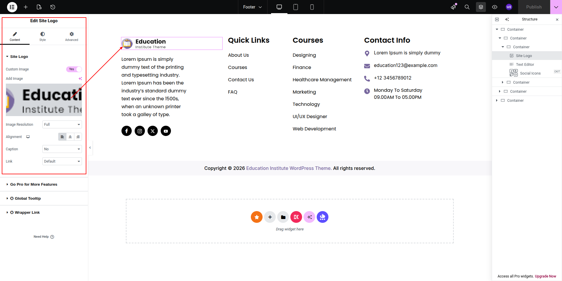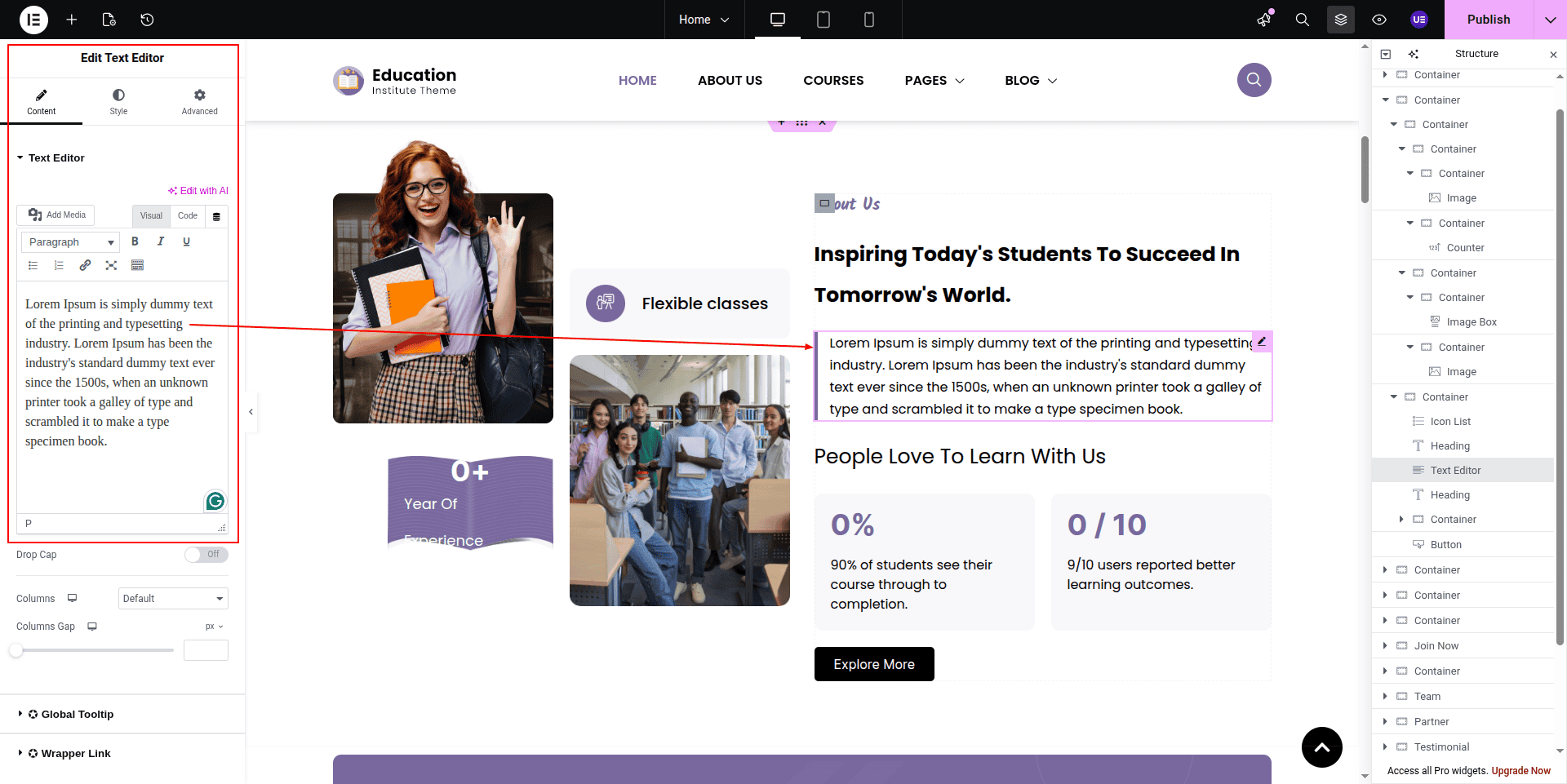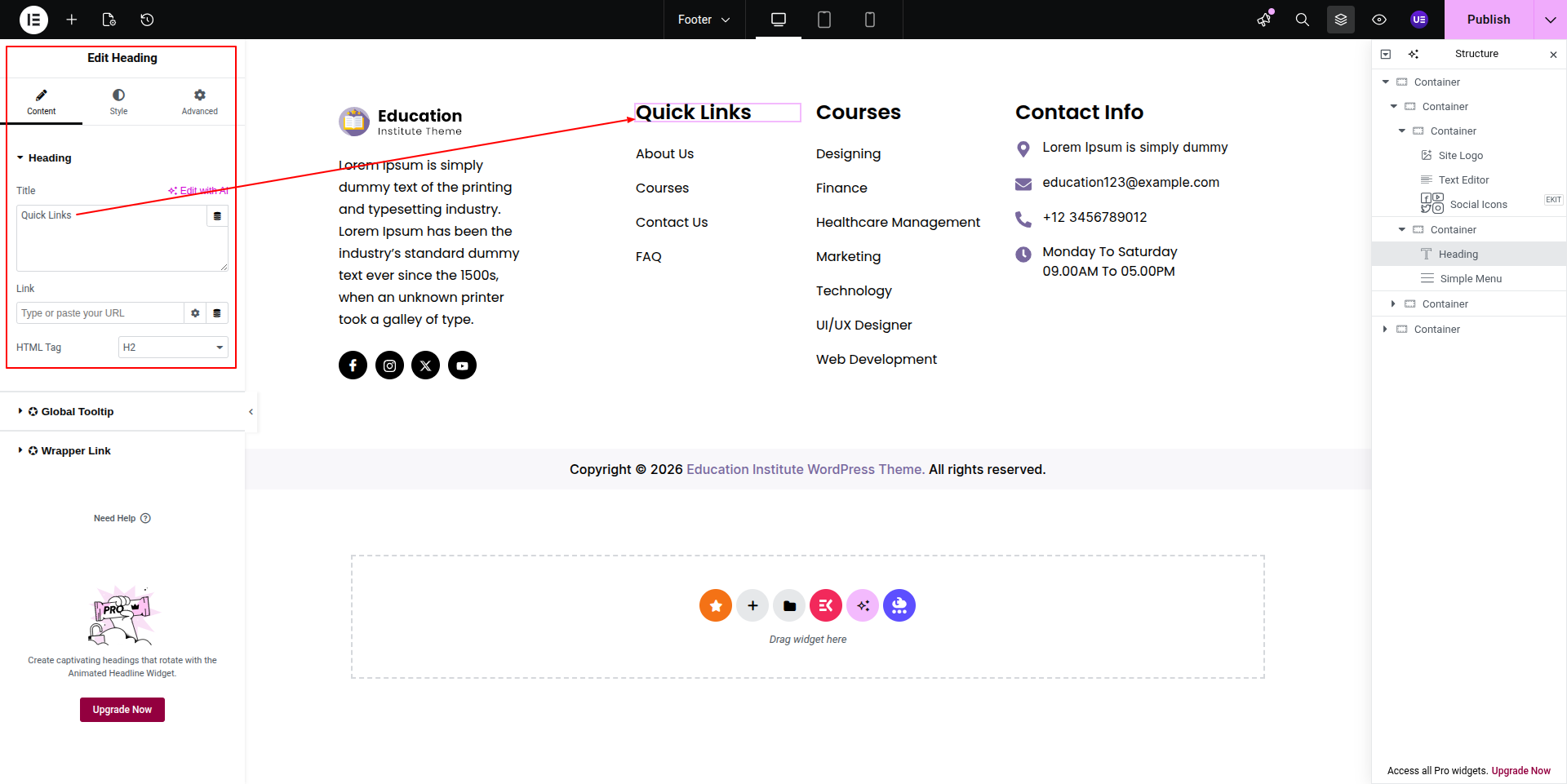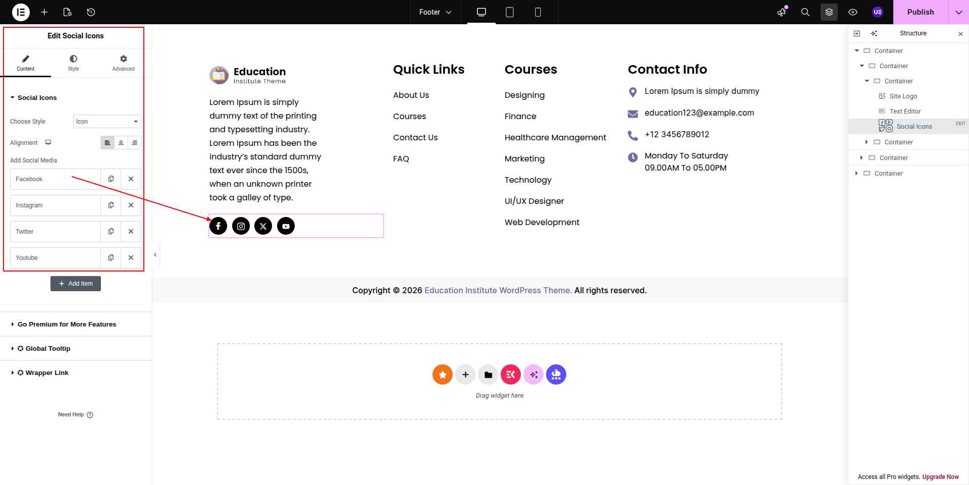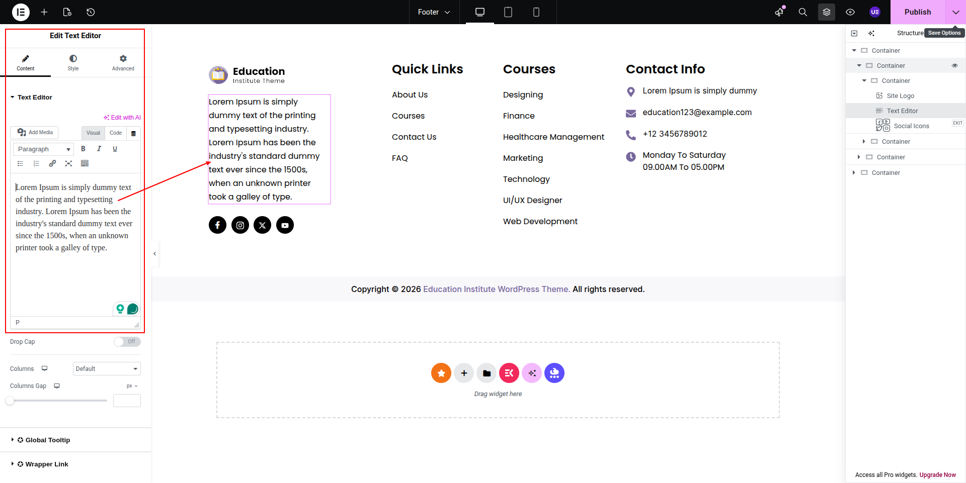 To Edit this Section, Click On the "Edit With Elementor" Button which will open the Elementor Widget editor.