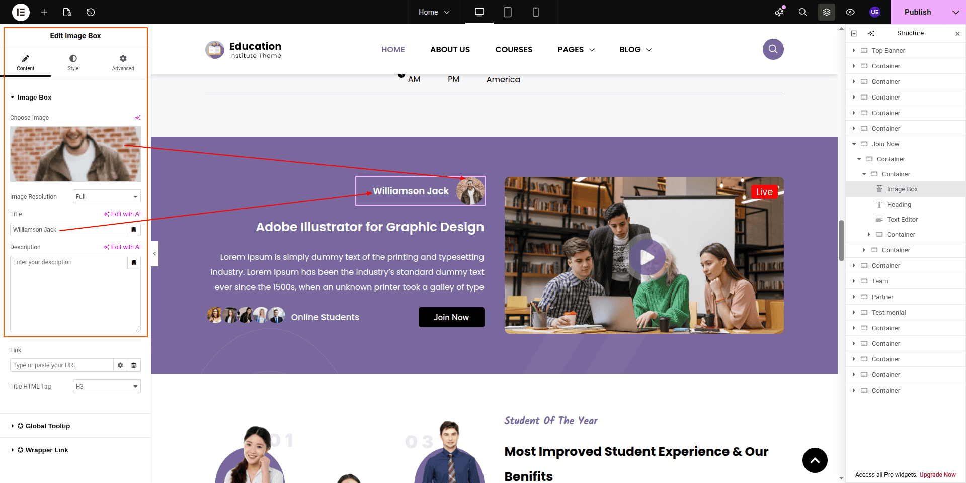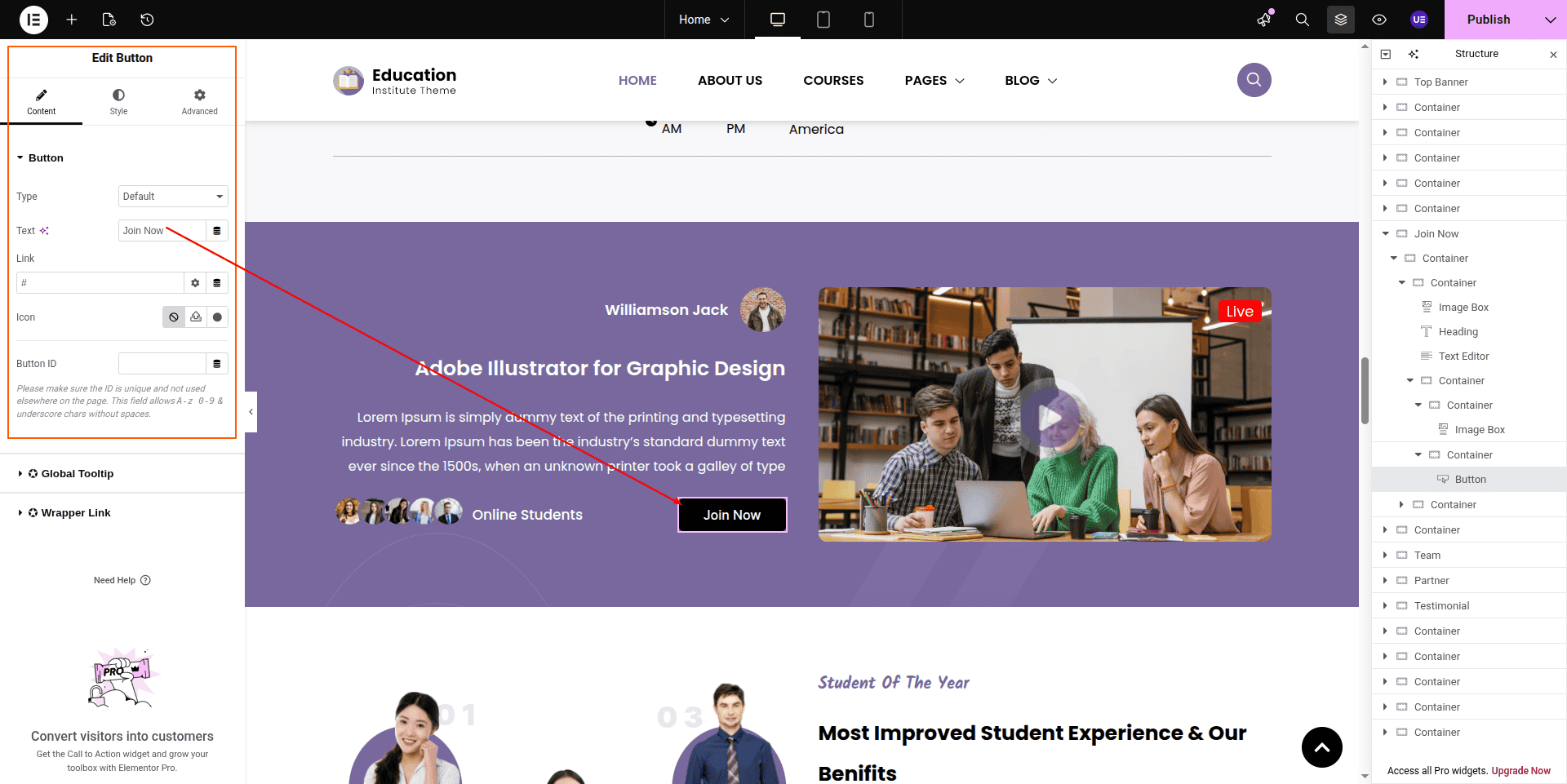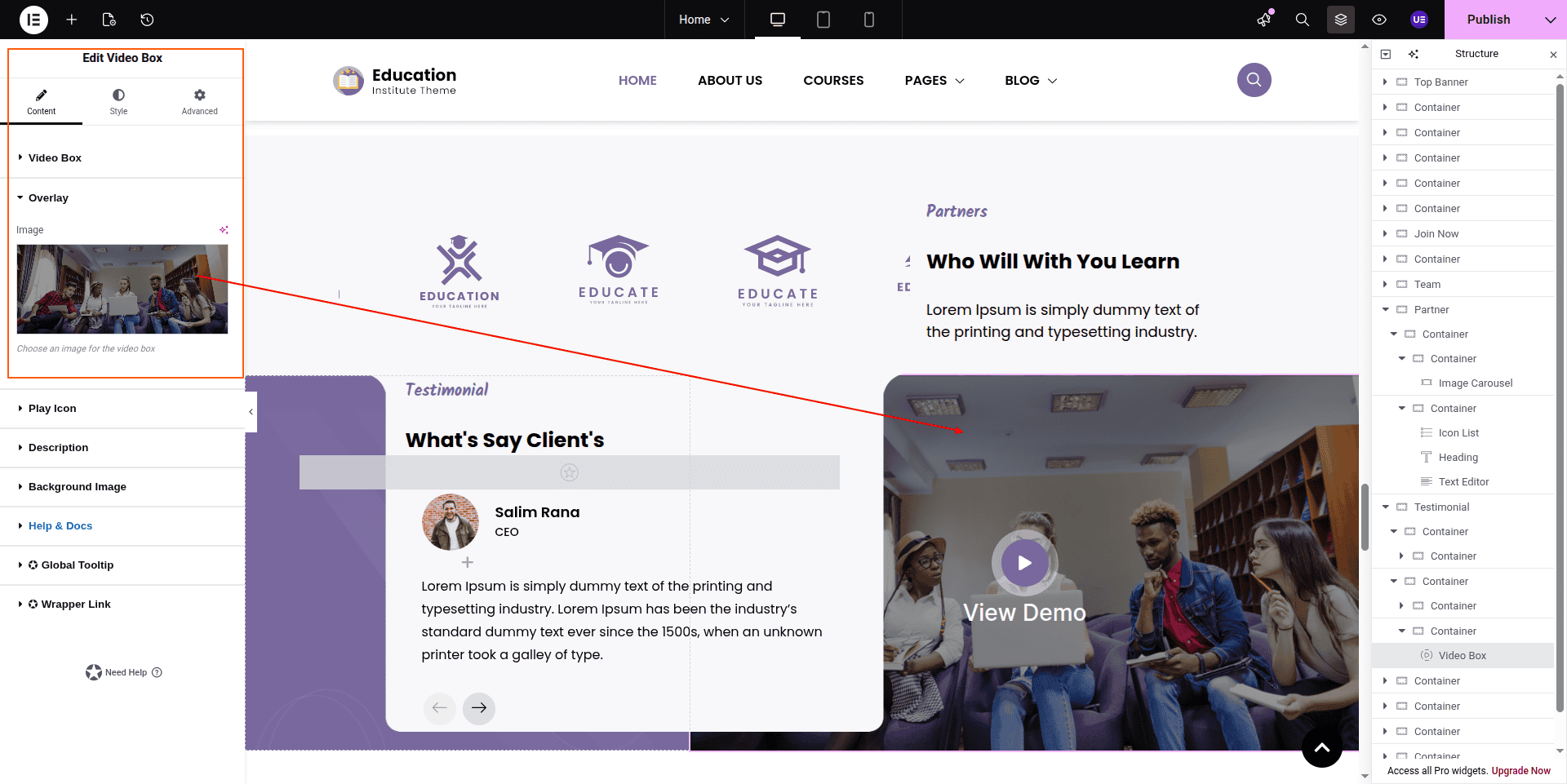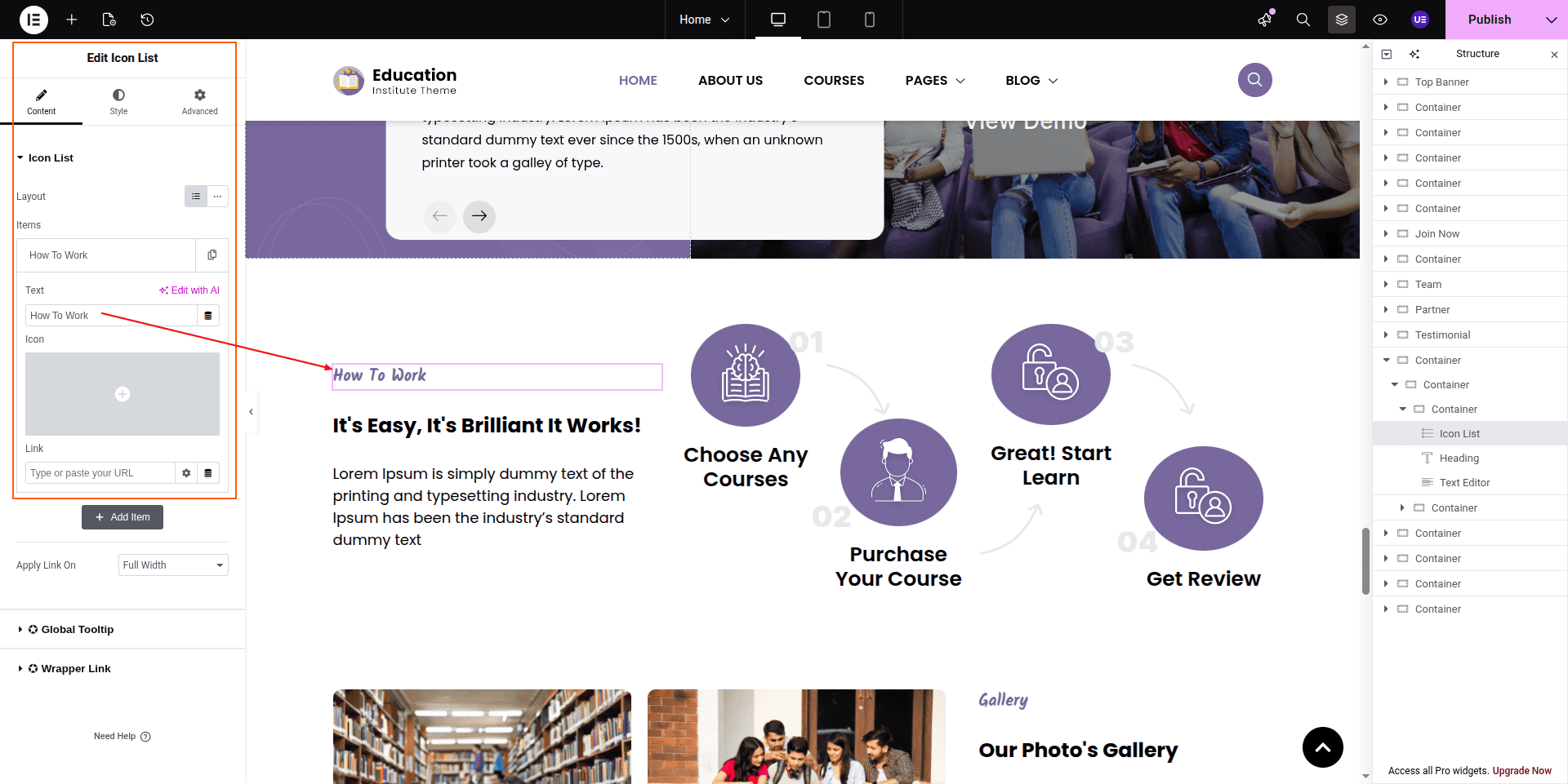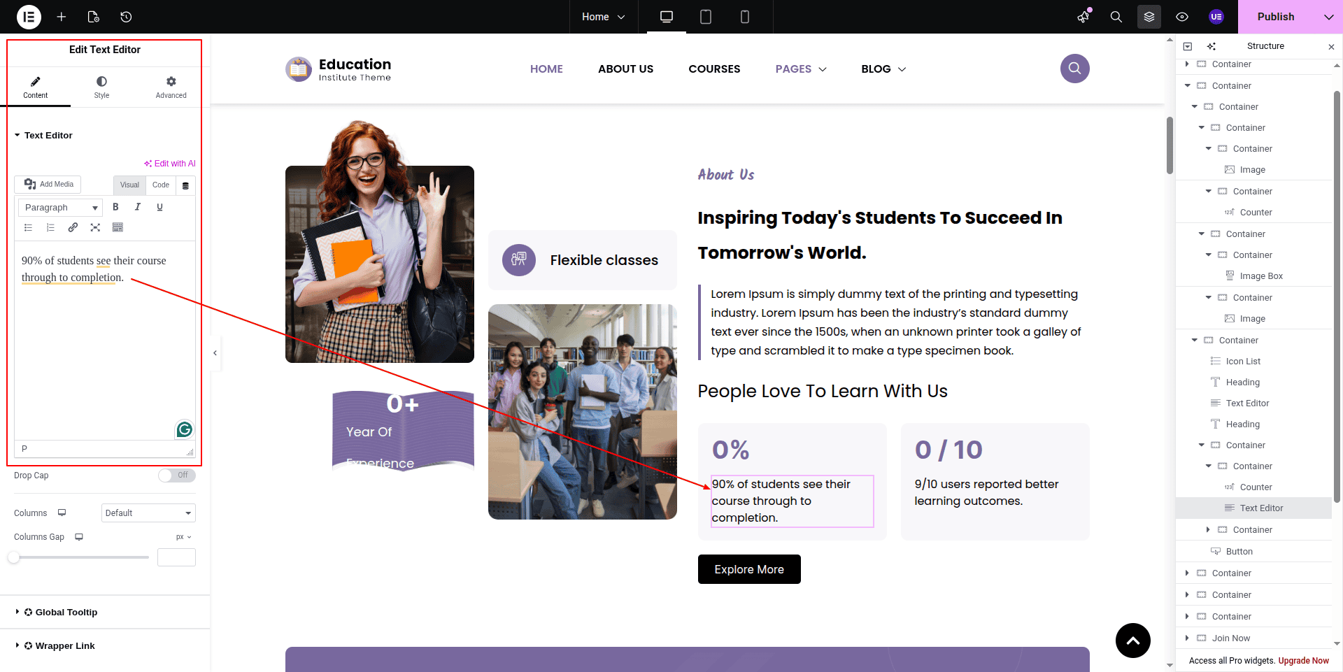 To Edit this Section, Click On the "Edit With Elementor" Button which will open the Elementor Widget editor.
