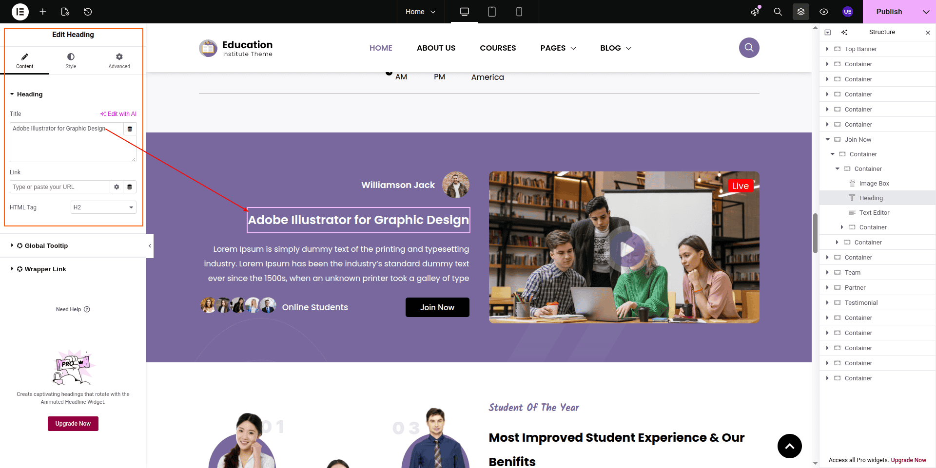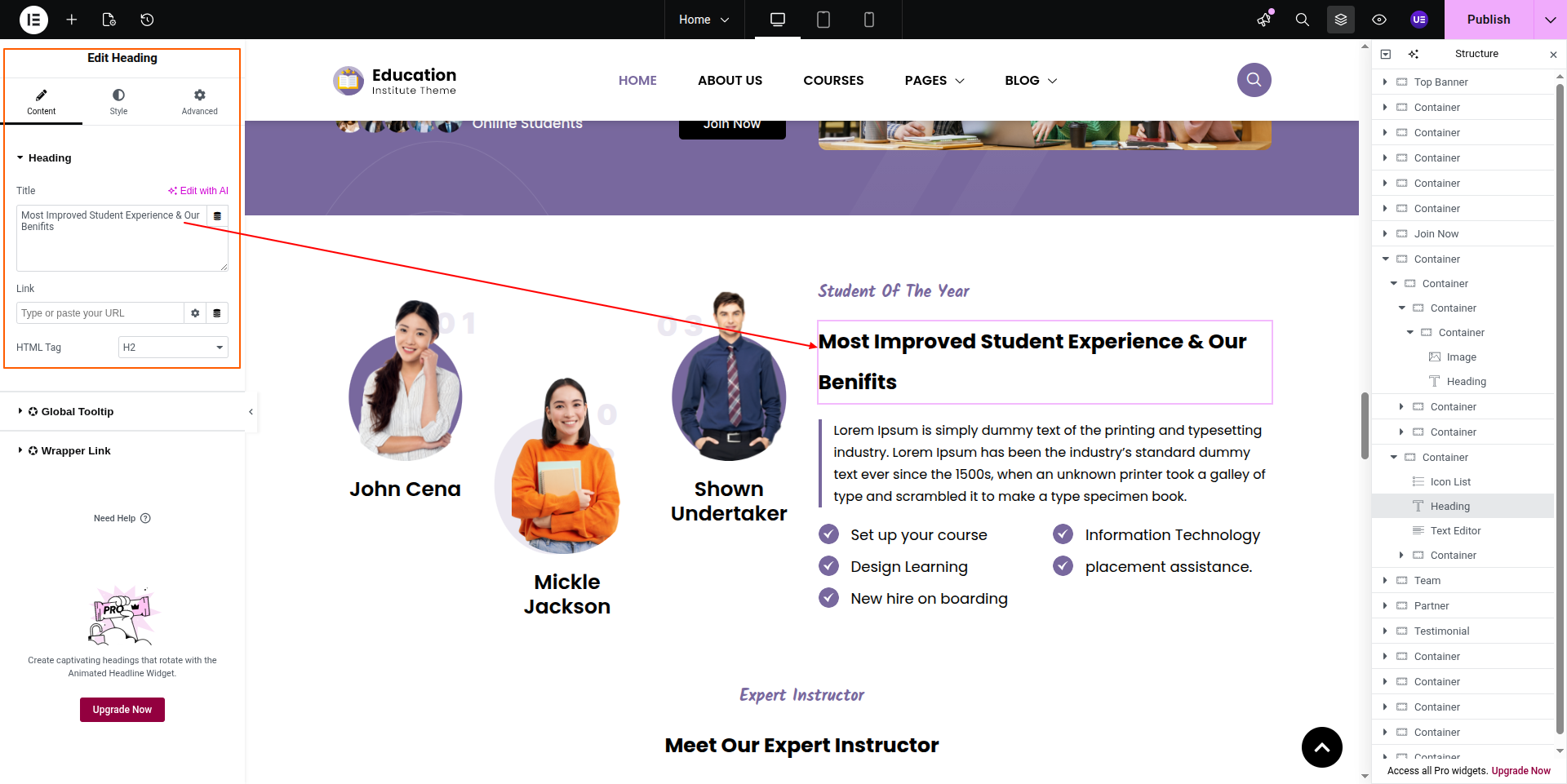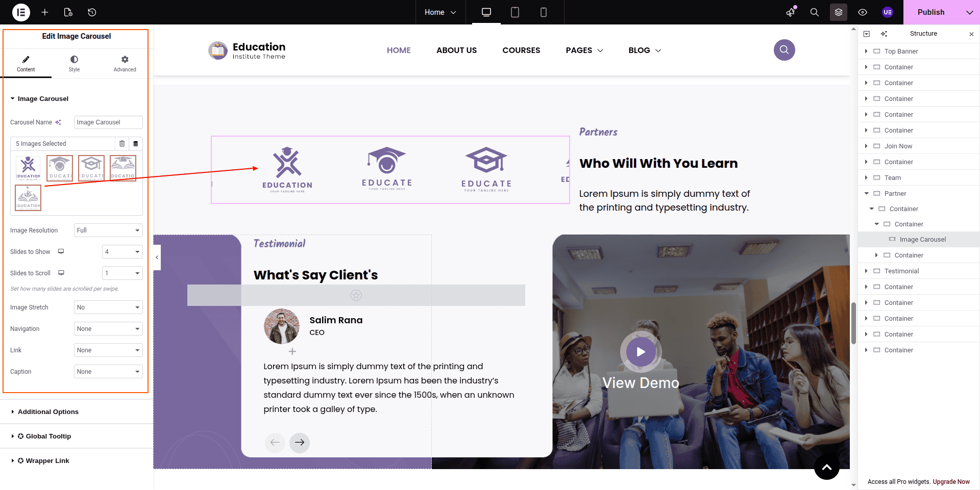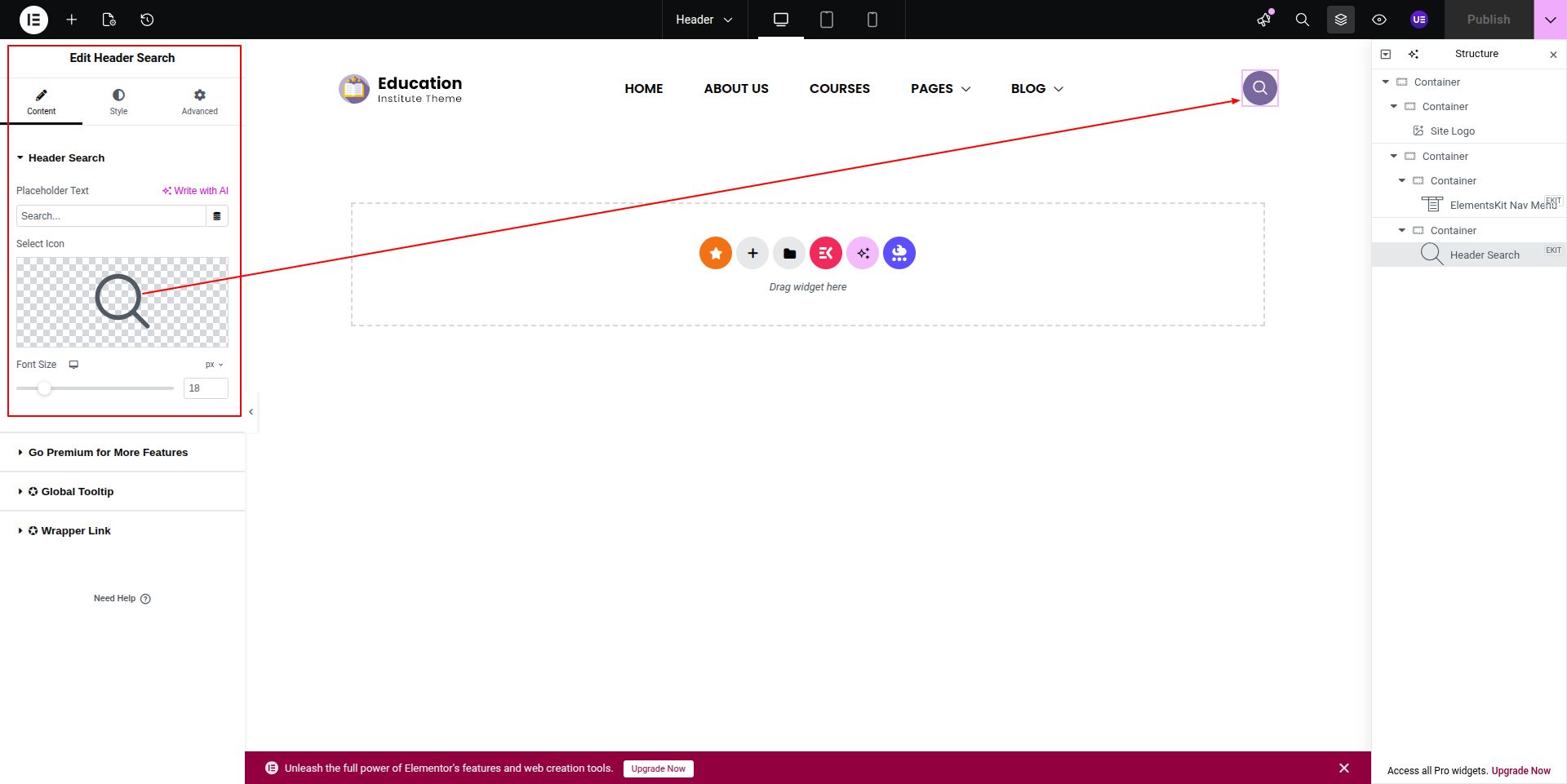 To Edit this Section, Click On the "Edit With Elementor" Button which will open the Elementor Widget editor.