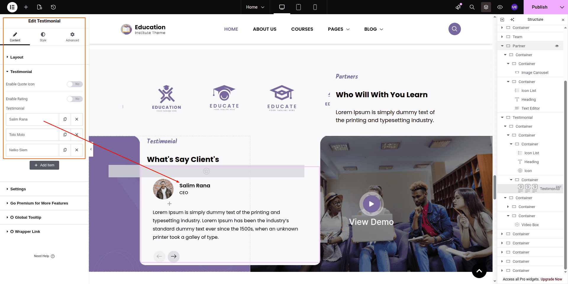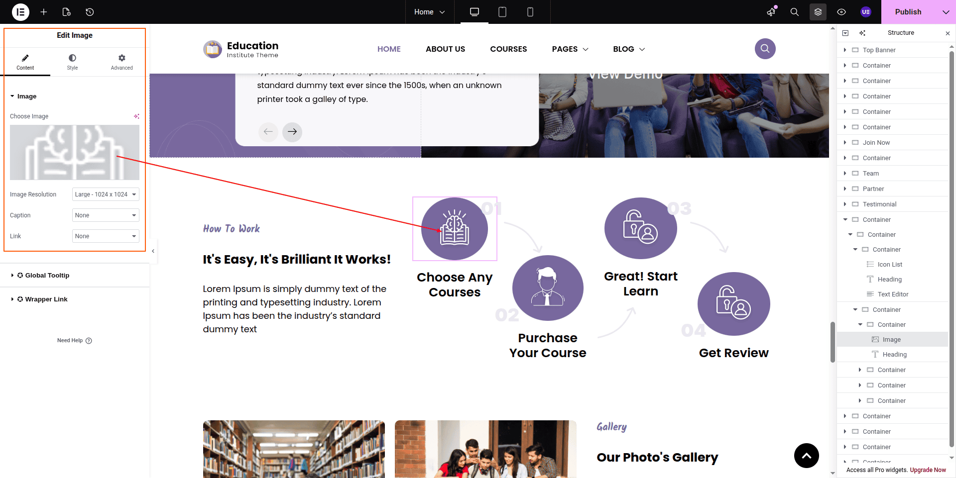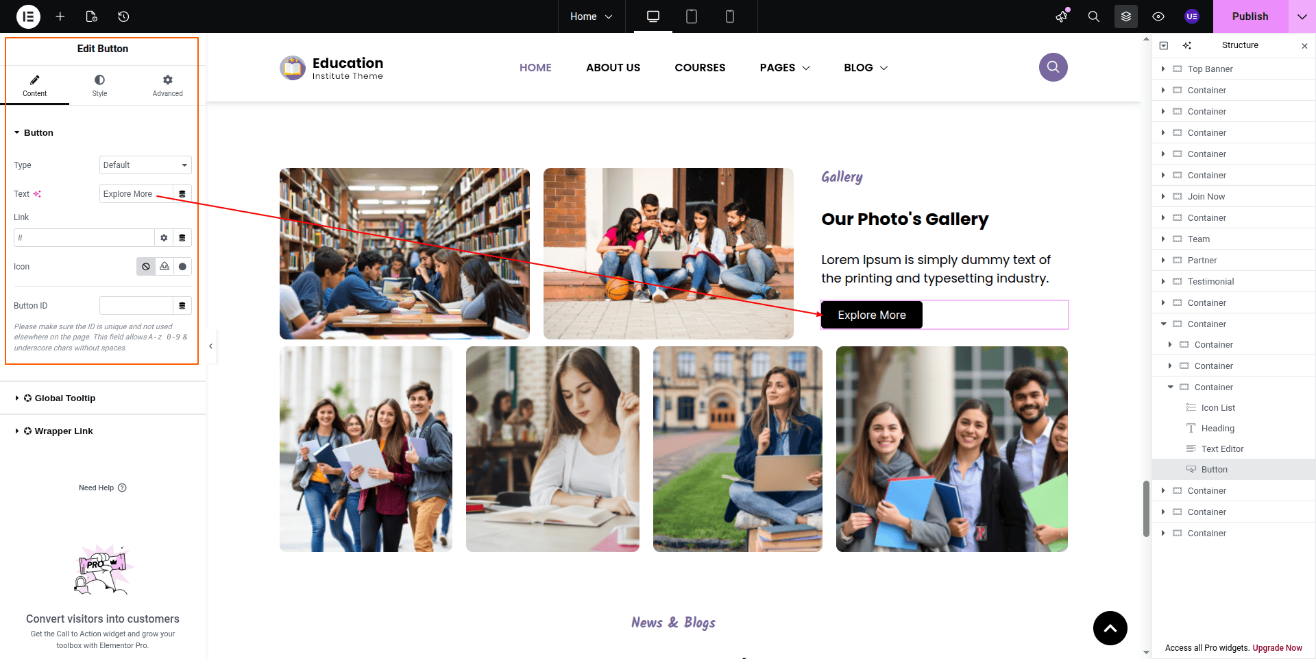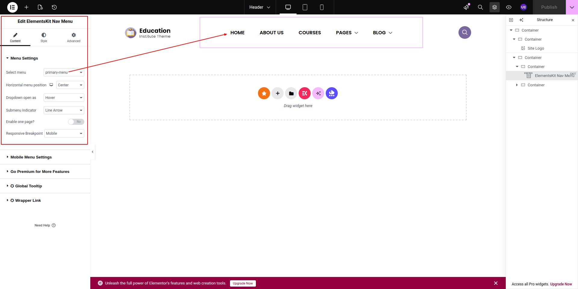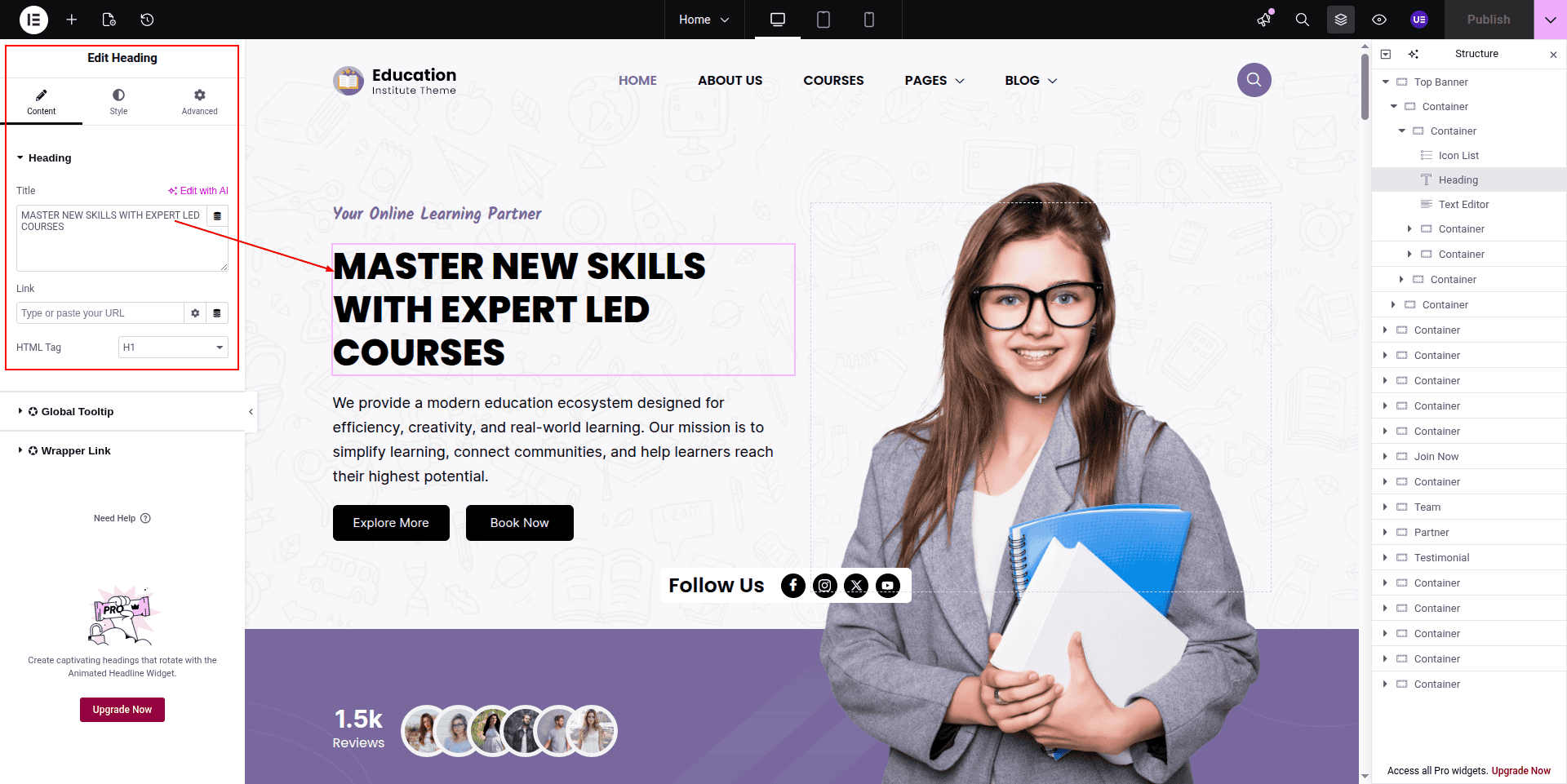 To Edit this Section, Click On the "Edit With Elementor" Button which will open the Elementor Widget editor.