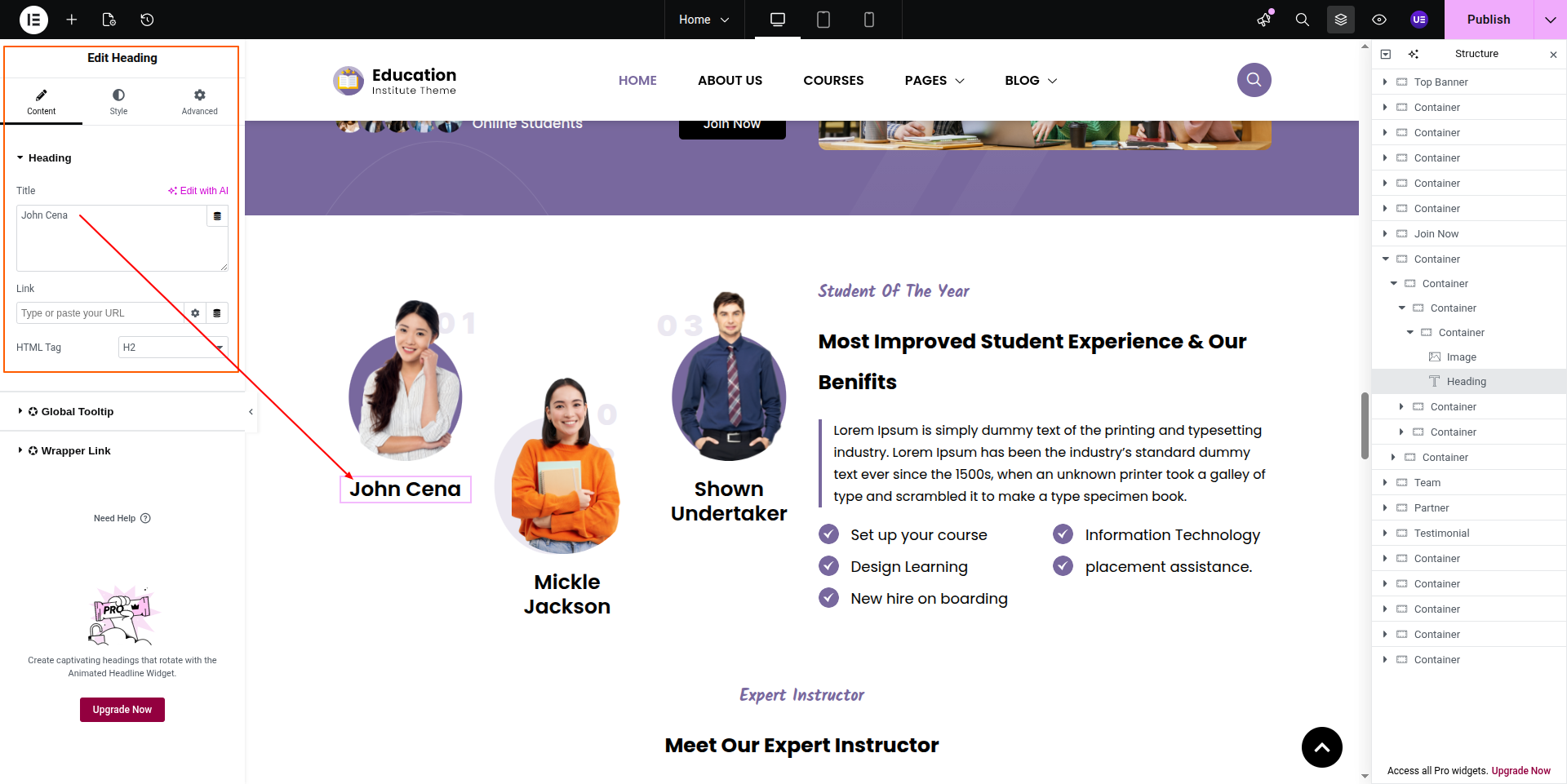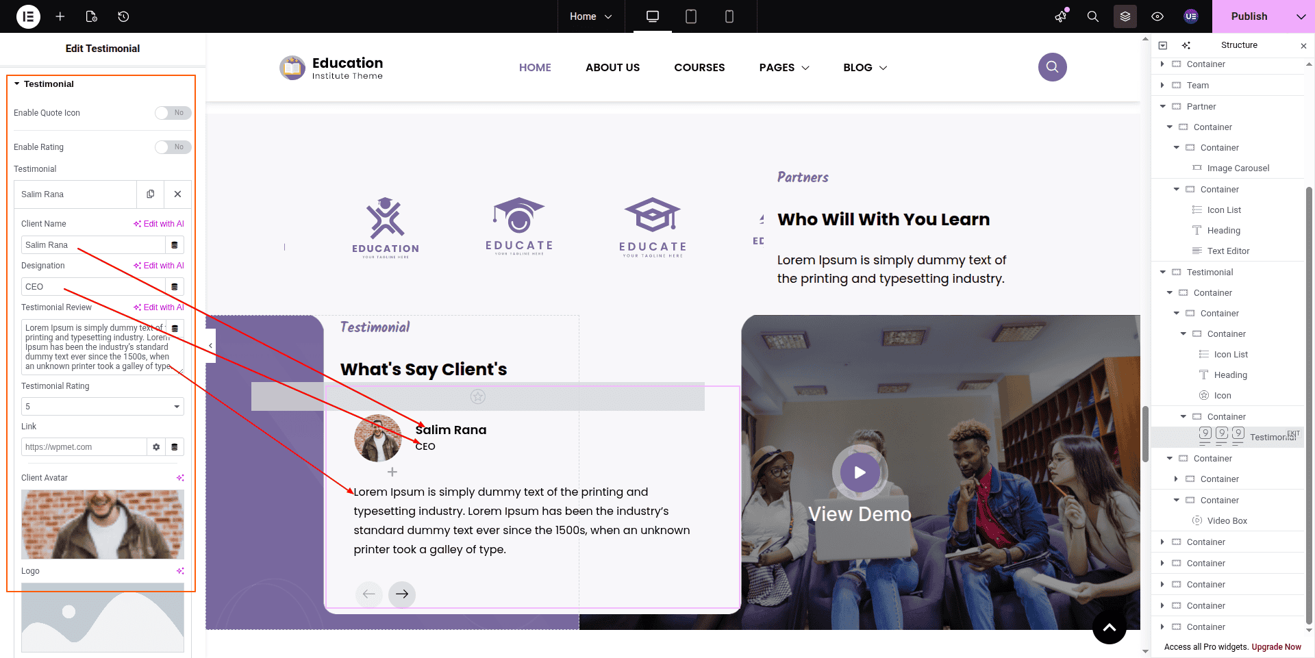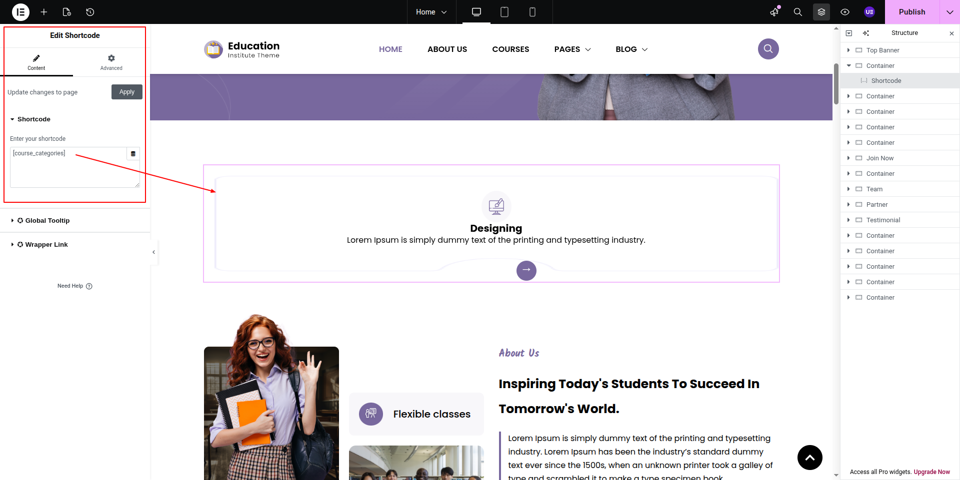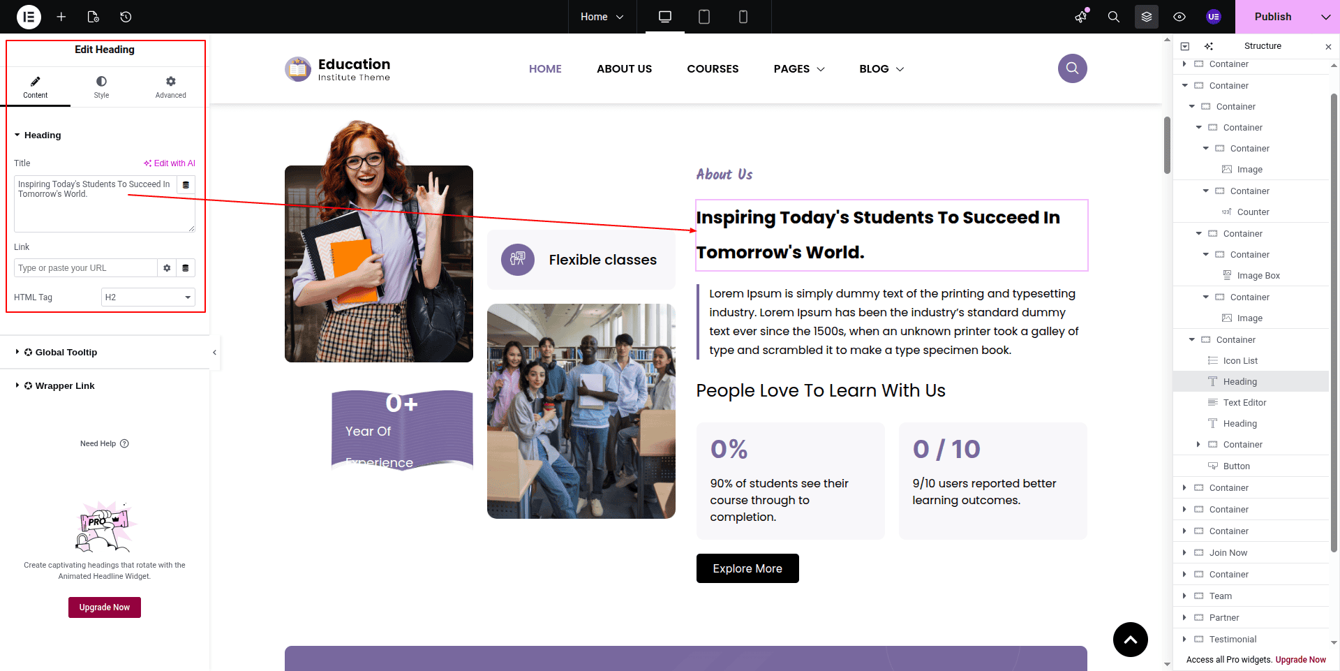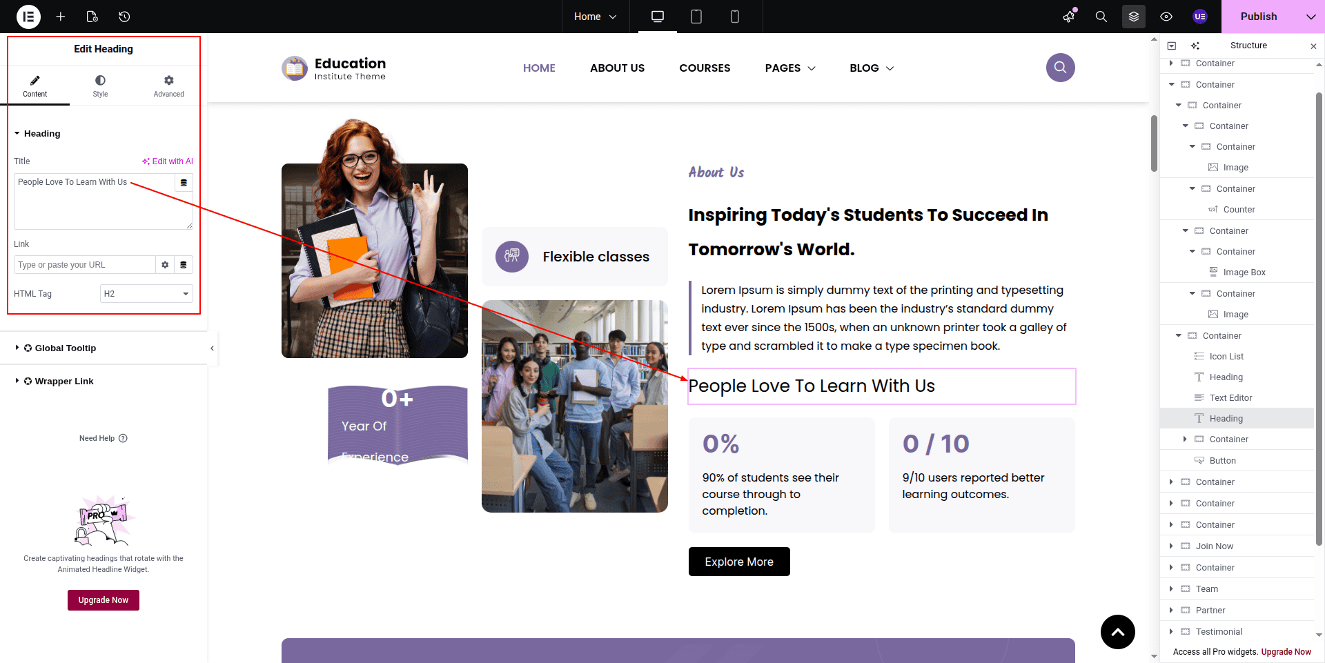 To Edit this Section, Click On the "Edit With Elementor" Button which will open the Elementor Widget editor.