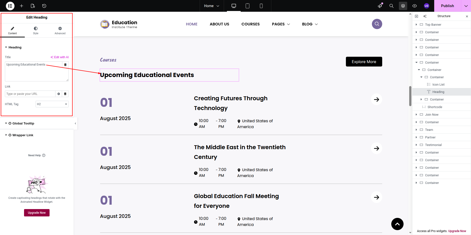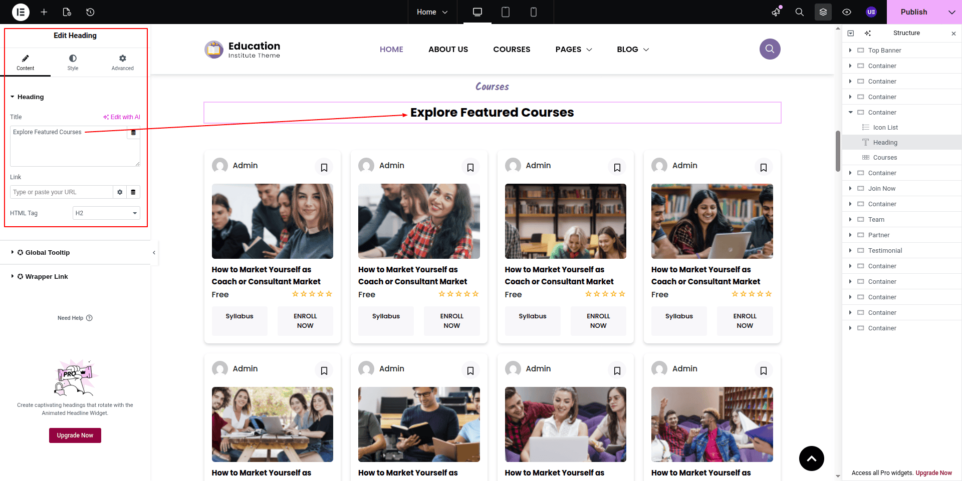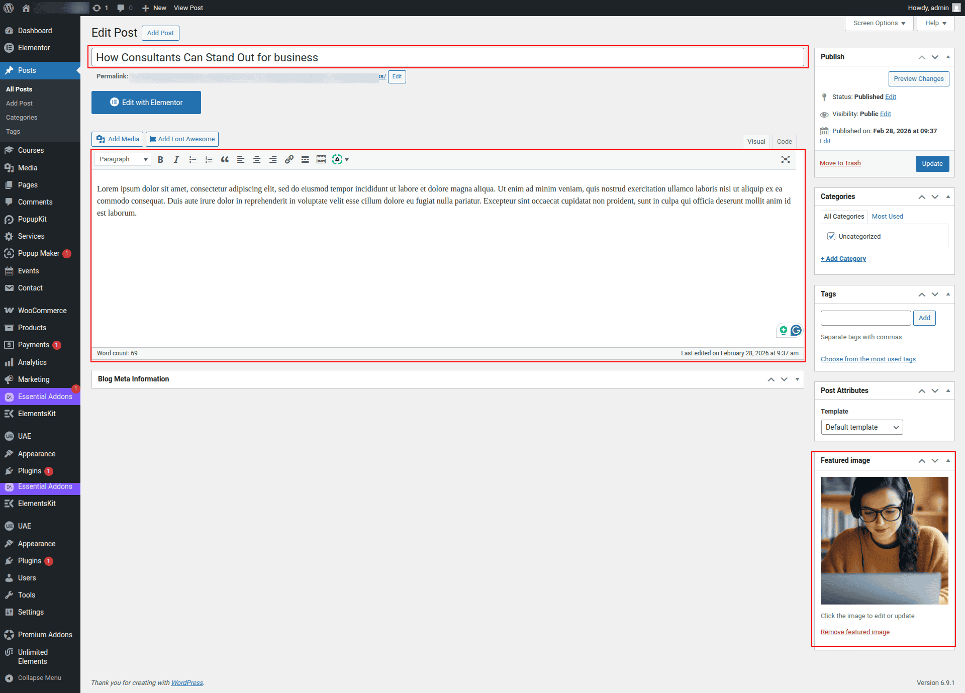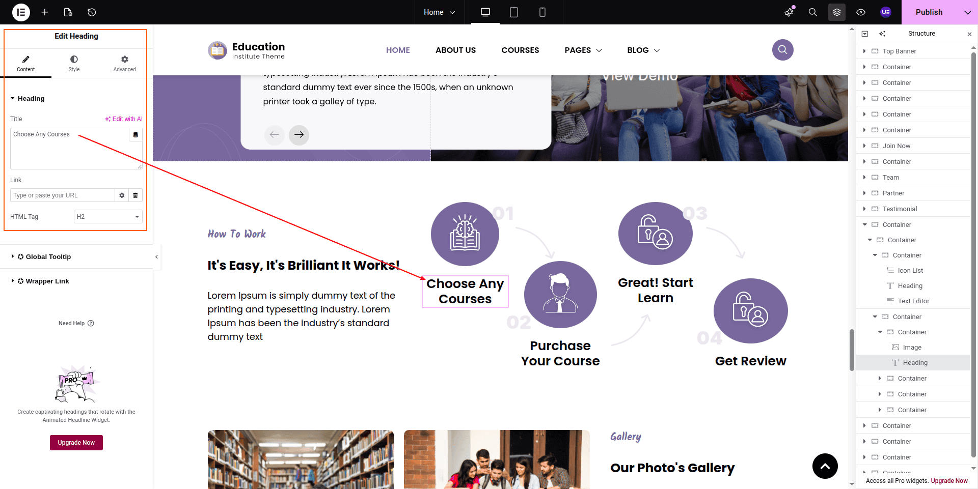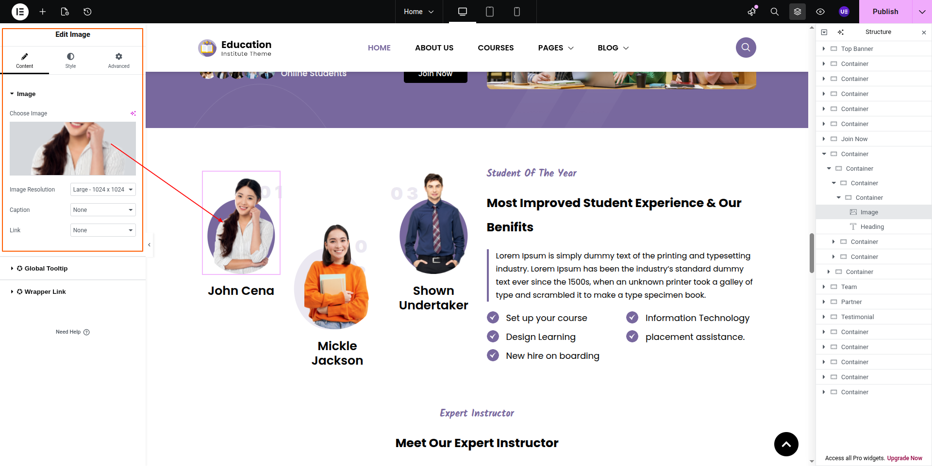To Edit this Section, Click On the "Edit With Elementor" Button which will open the Elementor Widget editor.